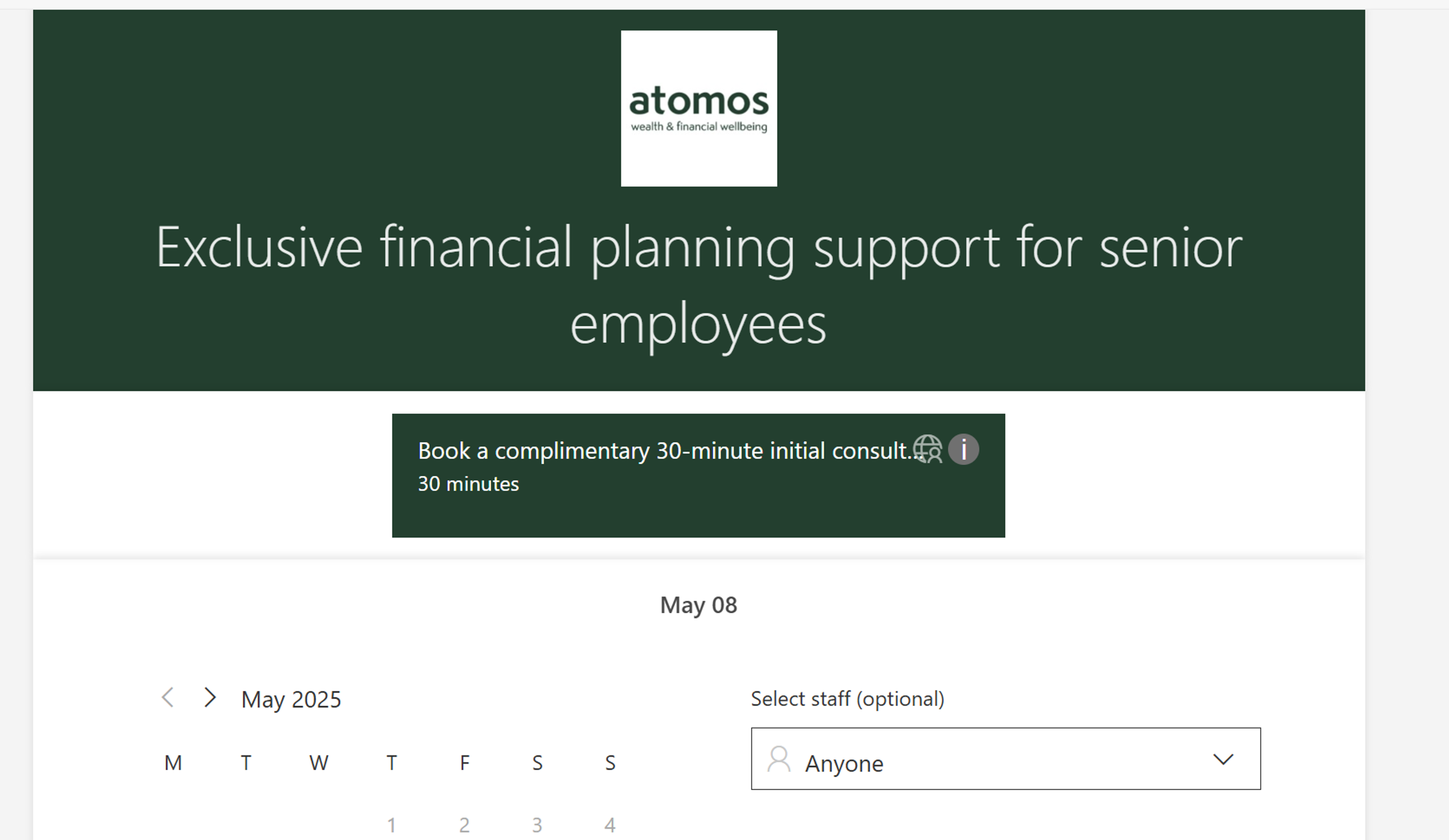 Book an initial call with one of our experienced financial planning associates who will assess your needs and schedule a meeting with one of our most senior advisers specialising in your area(s) of interest. Please use the calendar to book an appointment on a day and time most suitable for you.