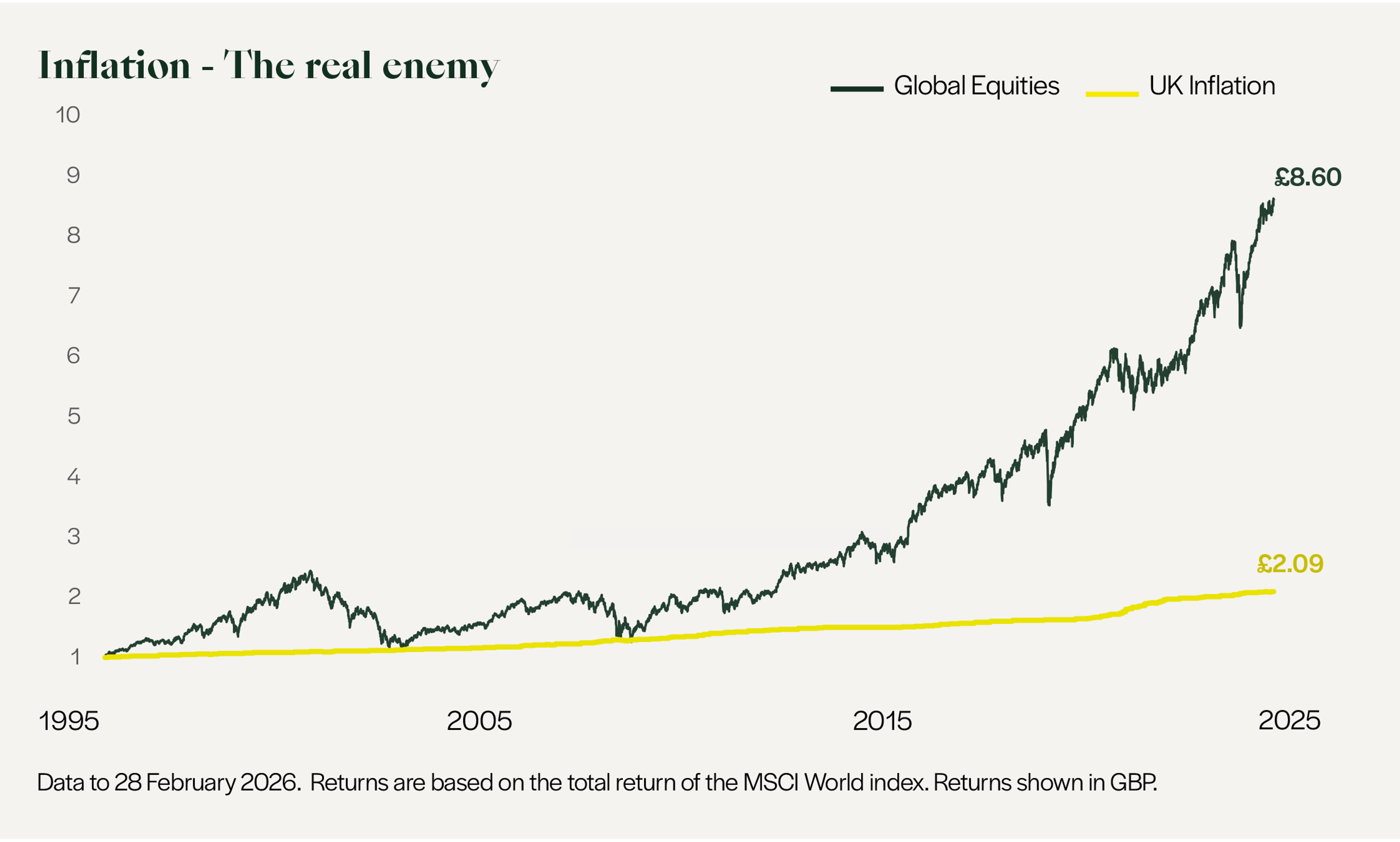 There is certainly a place for cash savings accounts, which can be a safe place to park money you may need in the short term. However, we advocate for a diversified portfolio of global equities, bonds, and other types of assets such as property and infrastructure as a way to consistently achieve inflation-beating returns over time.