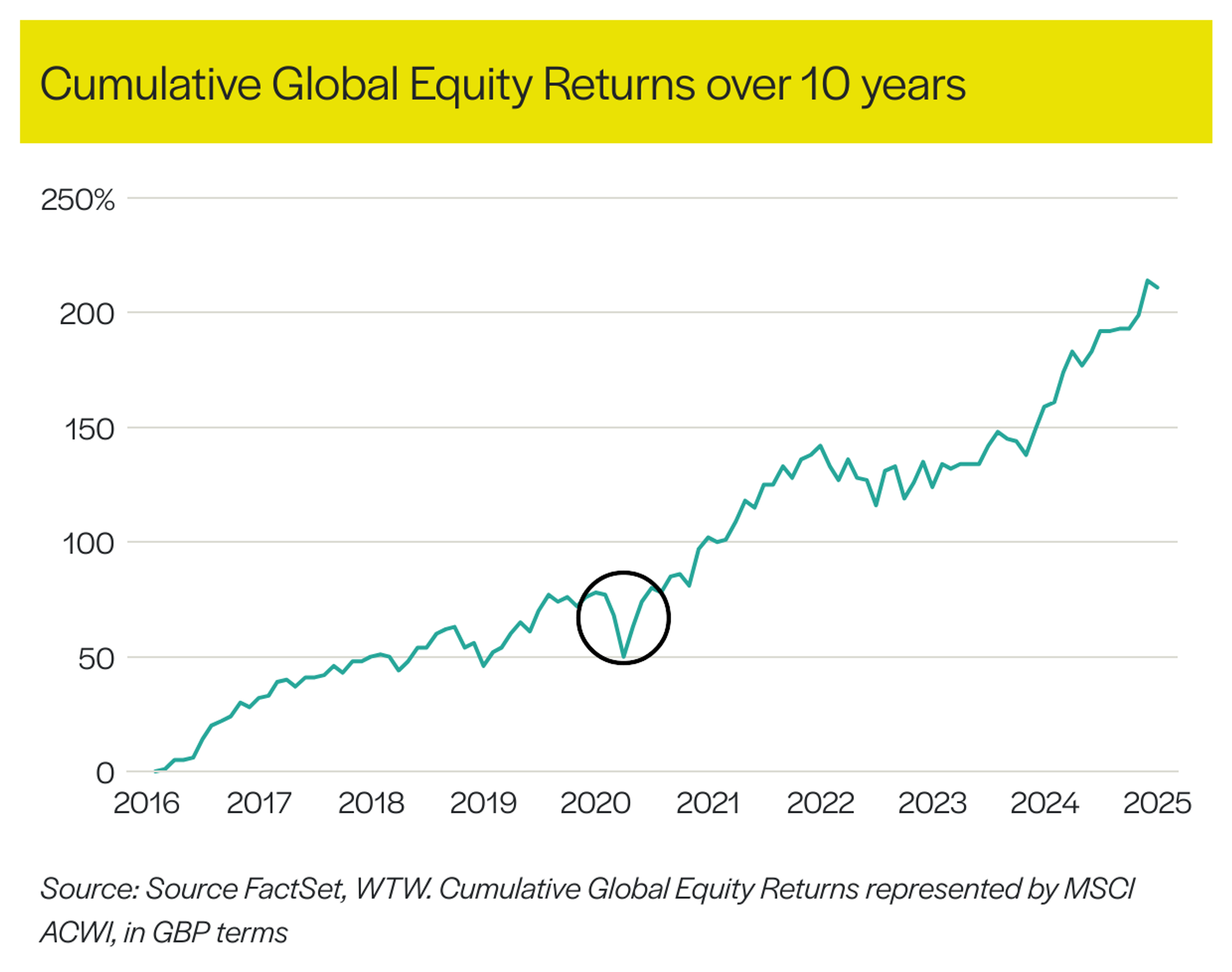 Markets go up and down (sometimes sharply), but the longer-term upward trend tends to outweigh the troughs, as shown in the charts below. For investors with a long-term outlook, staying invested through volatility is essential. Looking at a longer time frame, like ten years, can make short-term drops seem less worrying. That’s why experts often say to “zoom out” as it helps you see the bigger picture and the overall trend, instead of focusing only on small, recent changes. The charts are a reminder to investors to look past the attention-grabbing headlines and look at any declines in a wider context. This is important for several reasons: